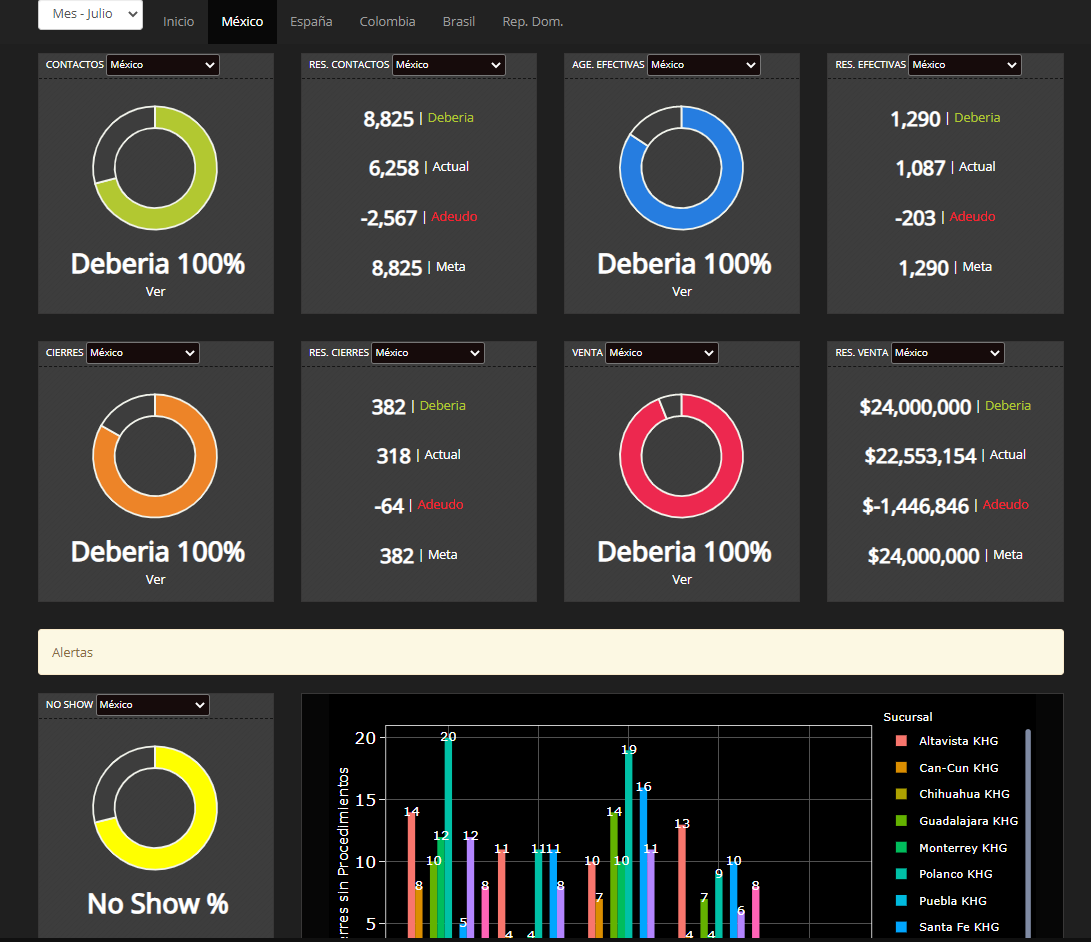 Fue desarrollado con el fin de poder monitorear el trabajo de cada ejecutivo del departamento, saber cuantos clientes ya habian atendido, en cuestión de si agendaron citas en alguna sucursal, si habian cerrado algun trato con un cliente, etc.