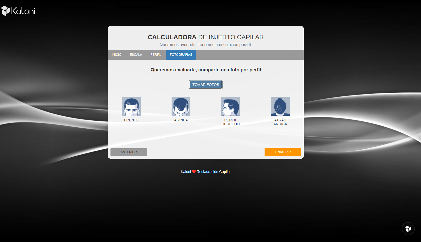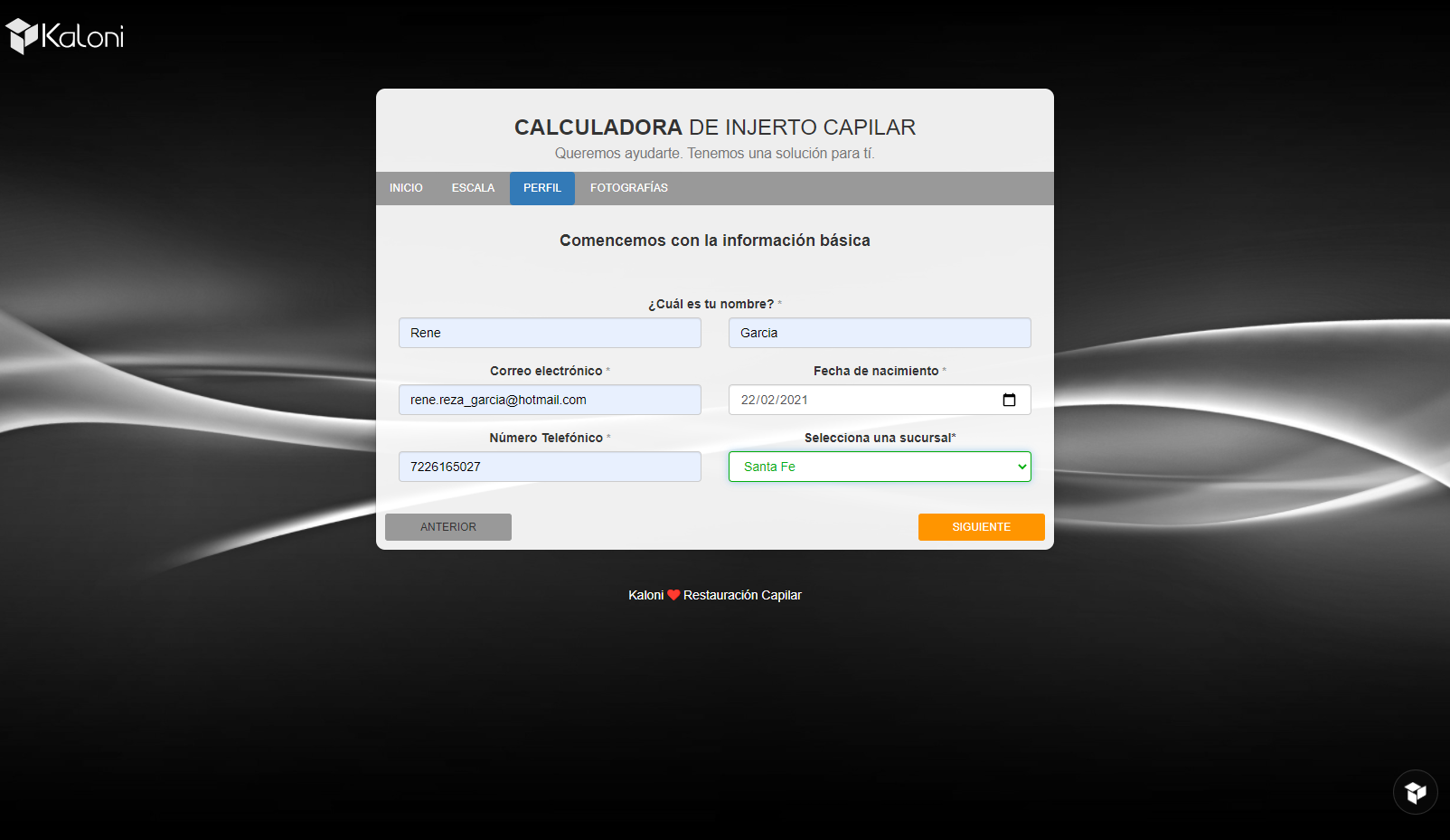 Es una aplicación web que se desarrollo con el fin de que los clientes si no podian ir presencialmente a una cita de valoración, puediera realizar una serie de pasos para poder mandar su información de su estado actual del cabello.